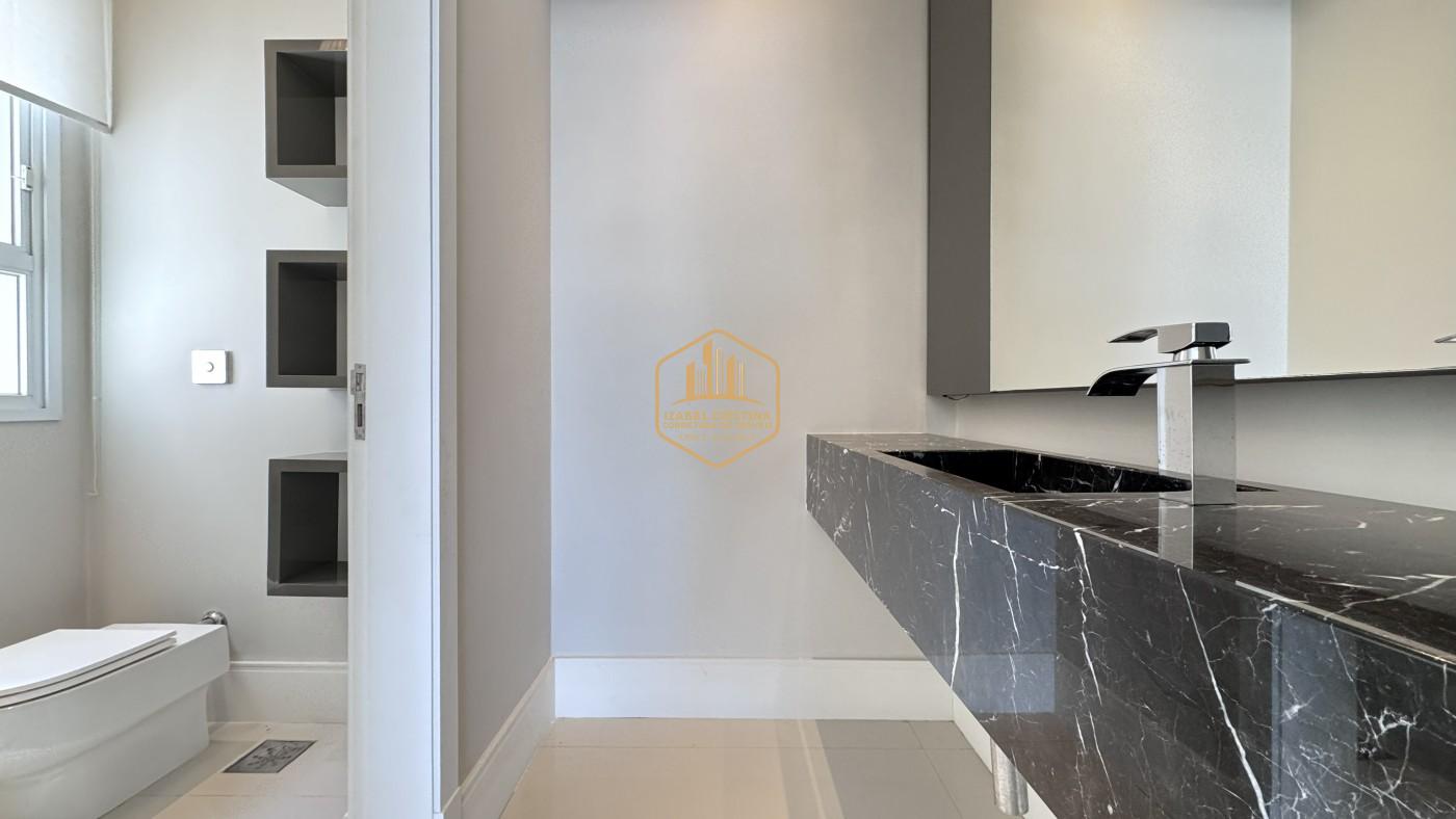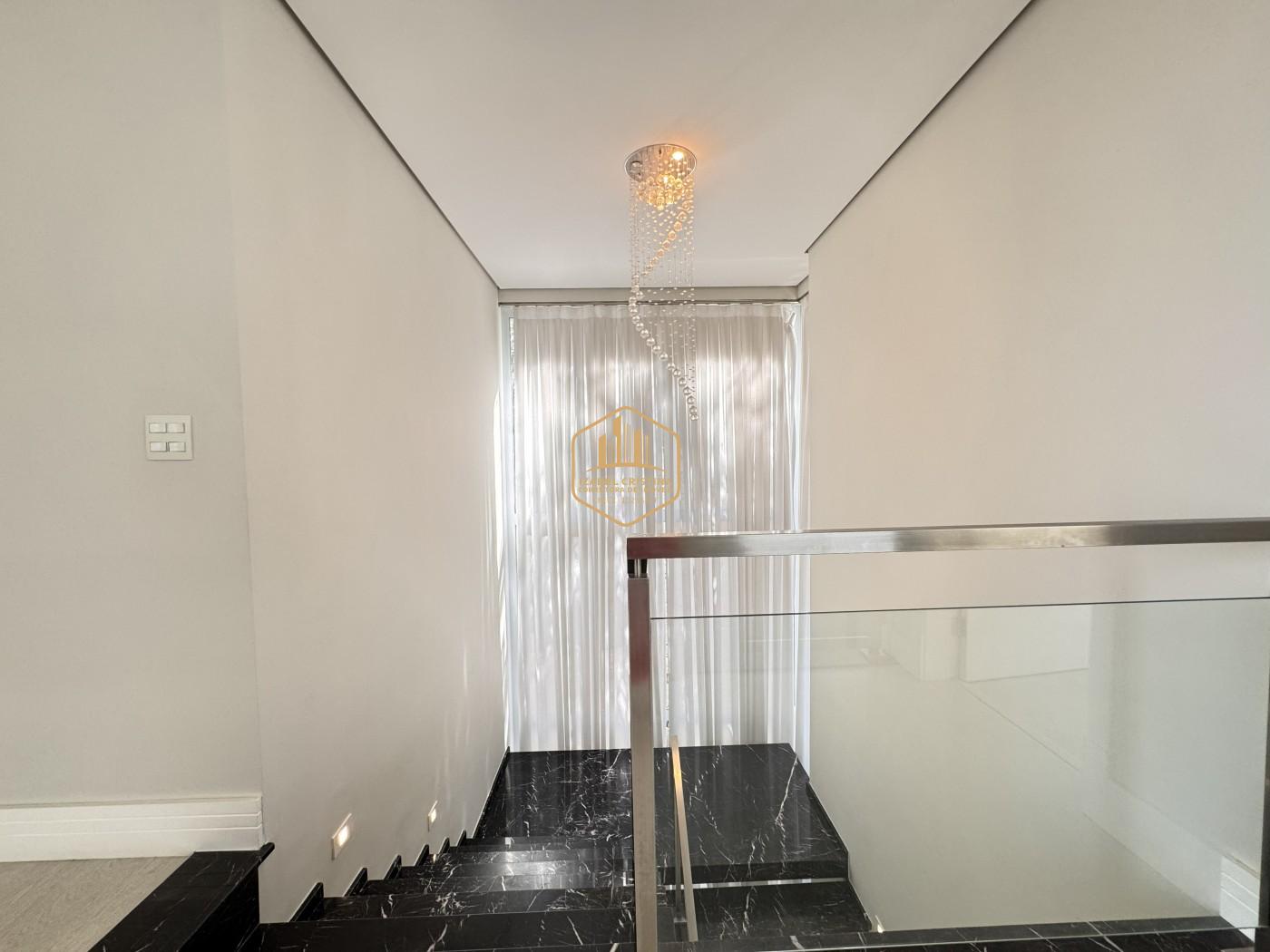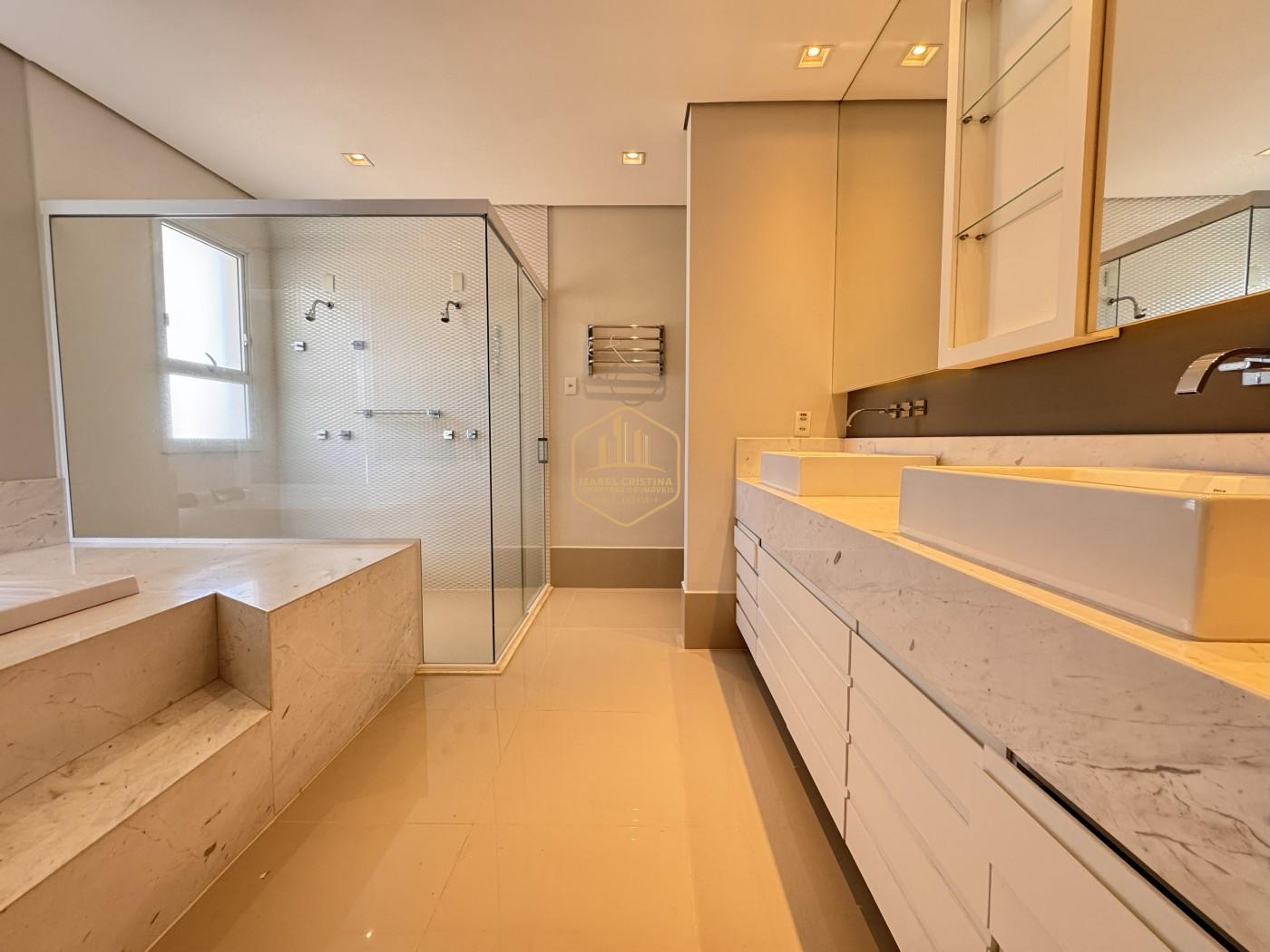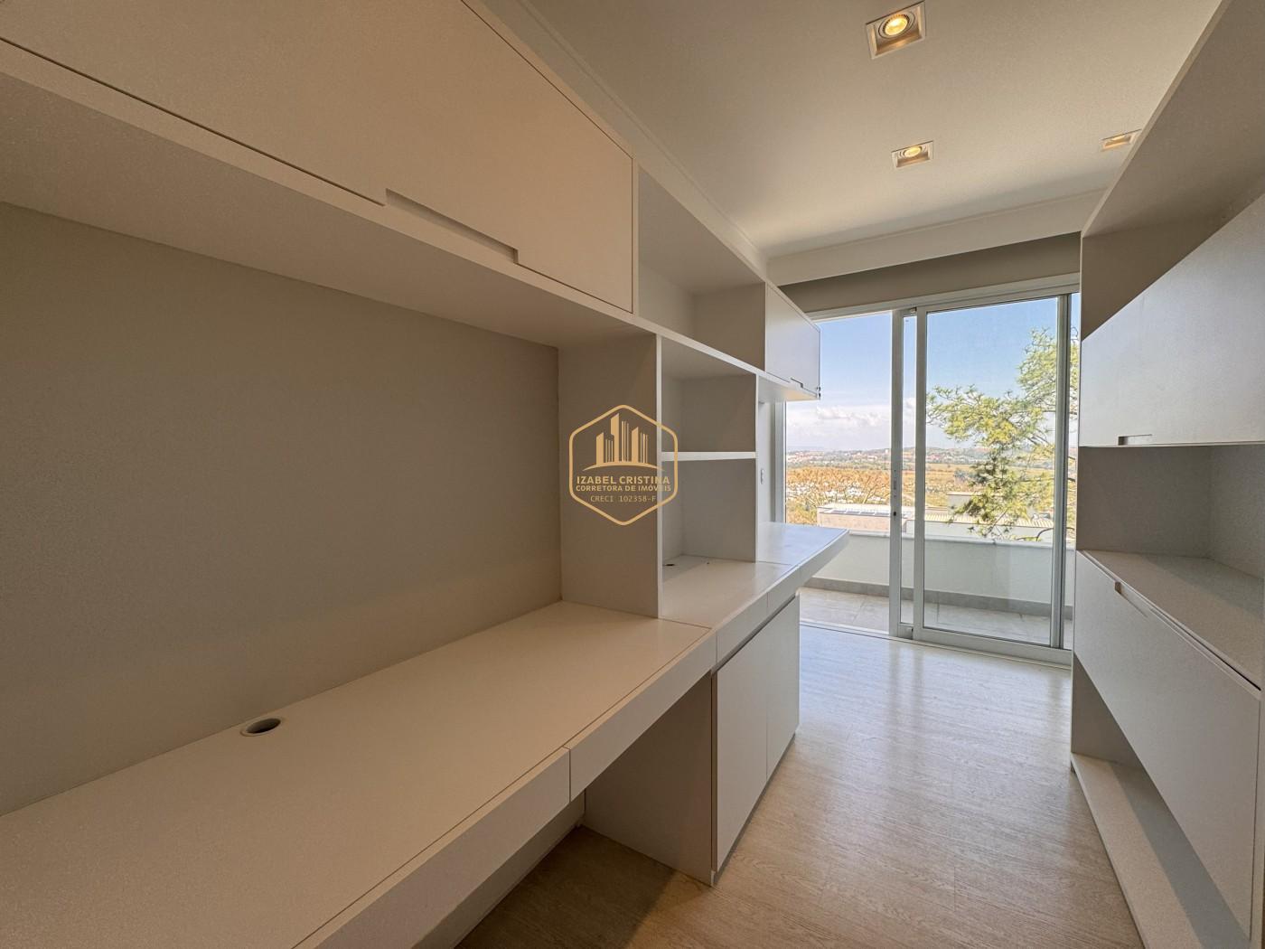Além disso, dispõe de sala de estar com pé direito duplo e lareira, home theater, cozinha com ilha e armários planejados, escritório para 2 pessoas, lavanderia com armários, churrasqueira integrada, academia com sauna, piscina com aquecimento solar e 12m de raia, entre outros detalhes de alto padrão.