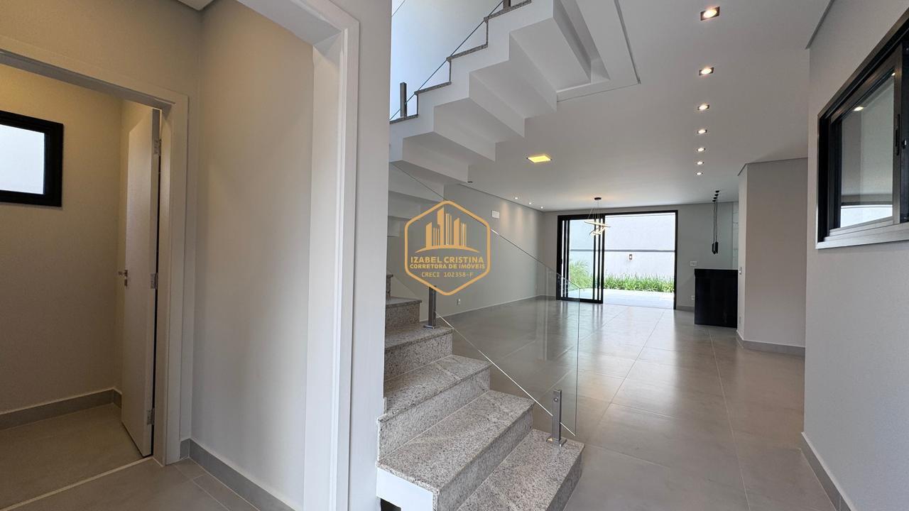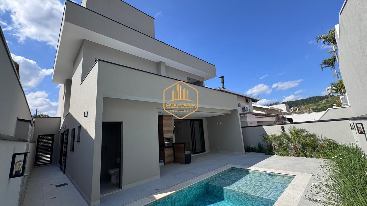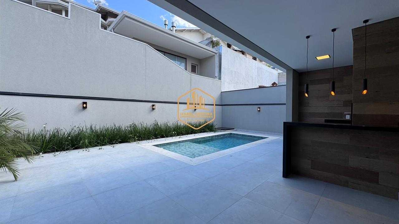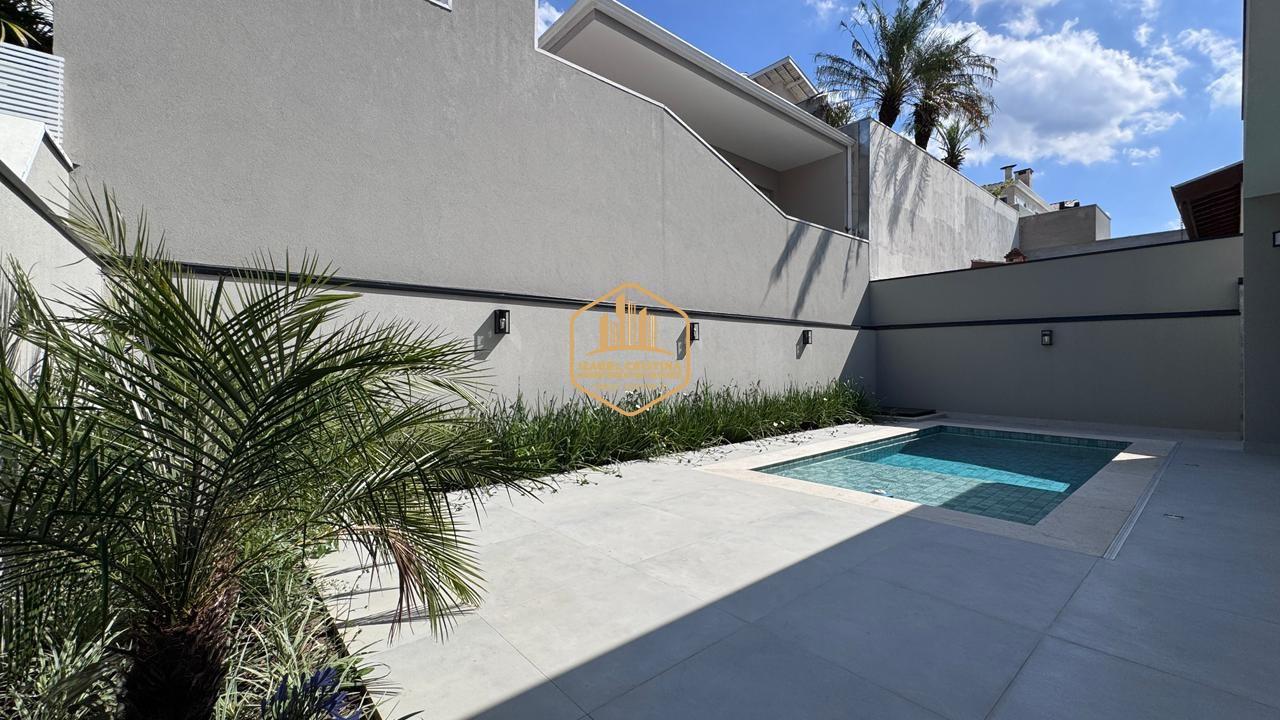 Moderno sobrado à venda em condomínio de alto padrão em Vinhedo! São 3 suítes (sendo a master com espaço para closet e duas com varanda), salas amplas de TV e estar integradas, lavabo, cozinha conceito aberto, área gourmet com churrasqueira e piscina.