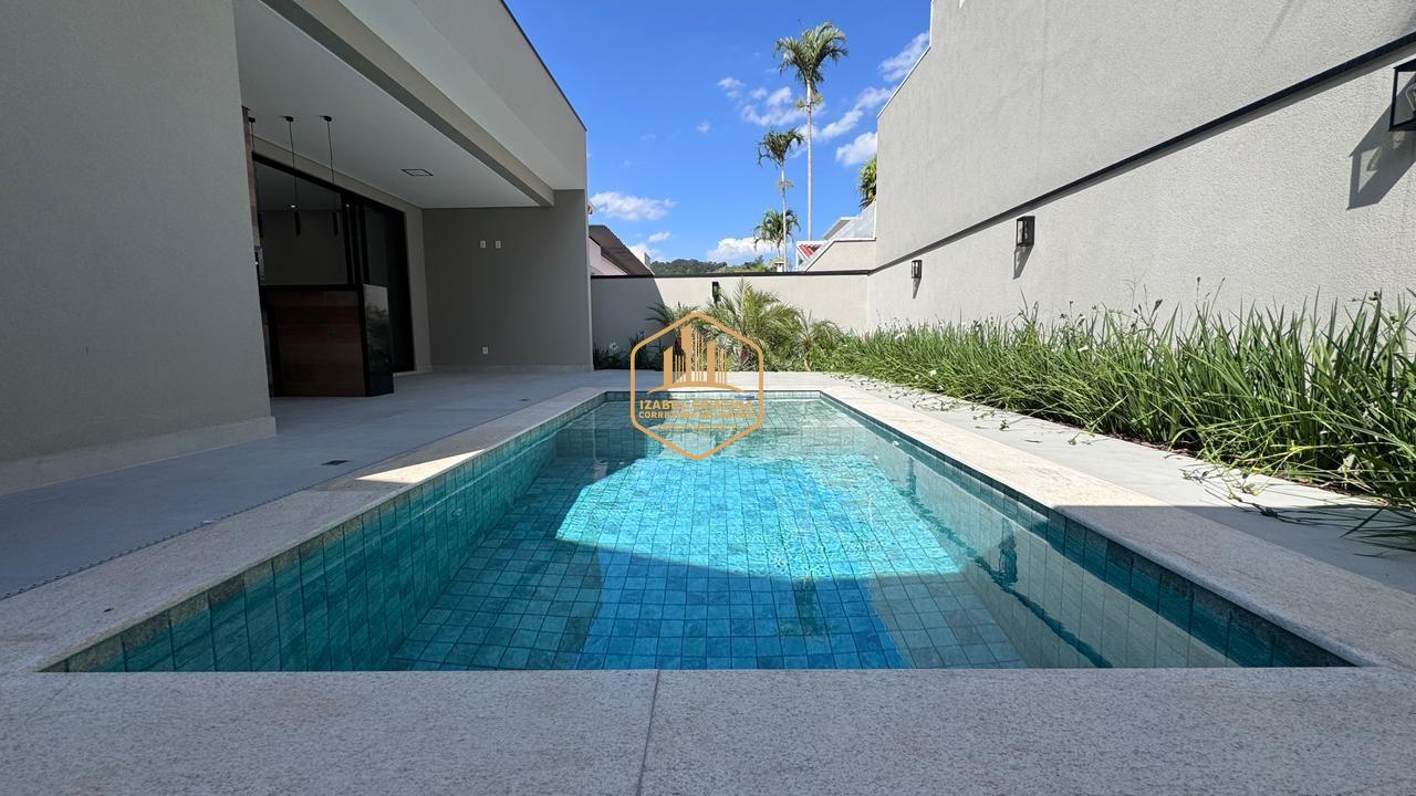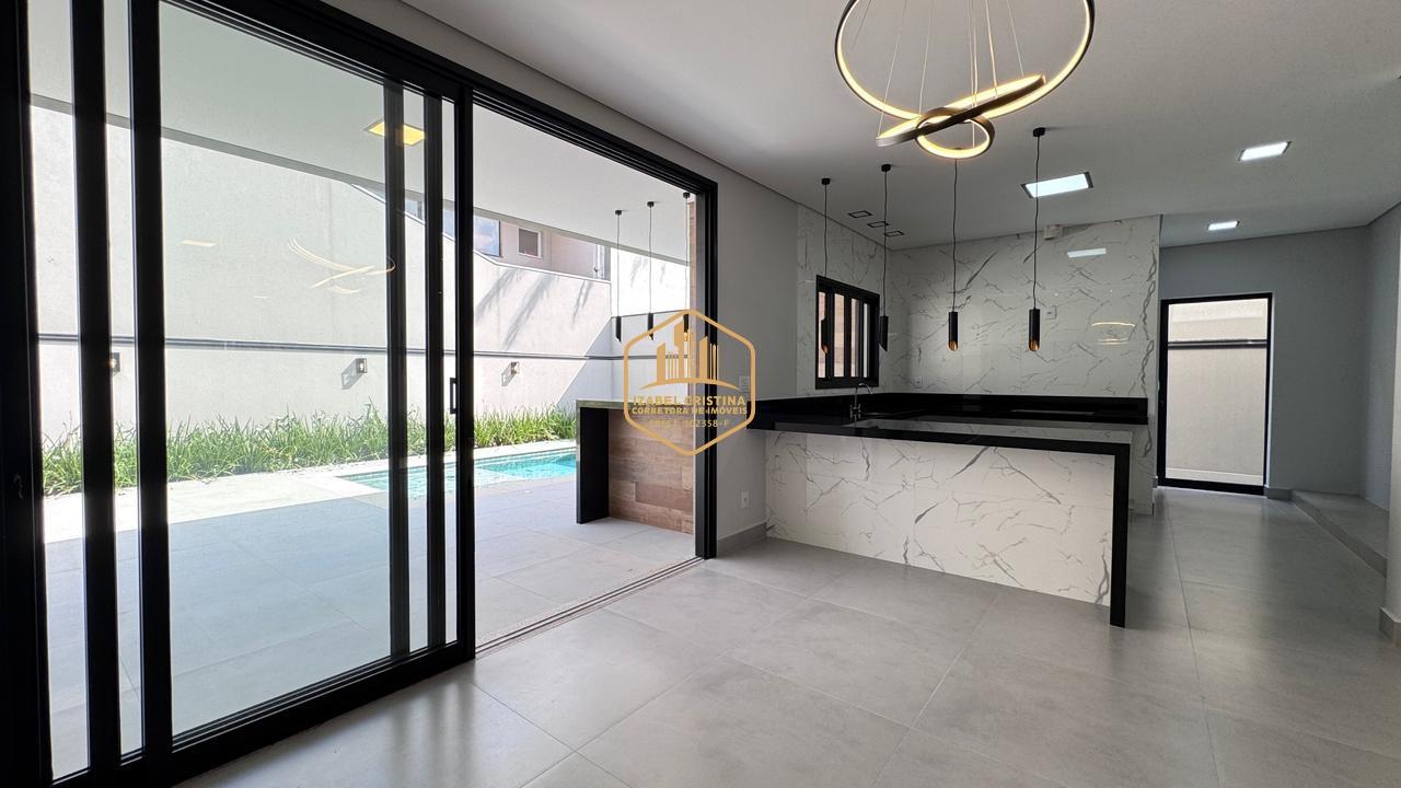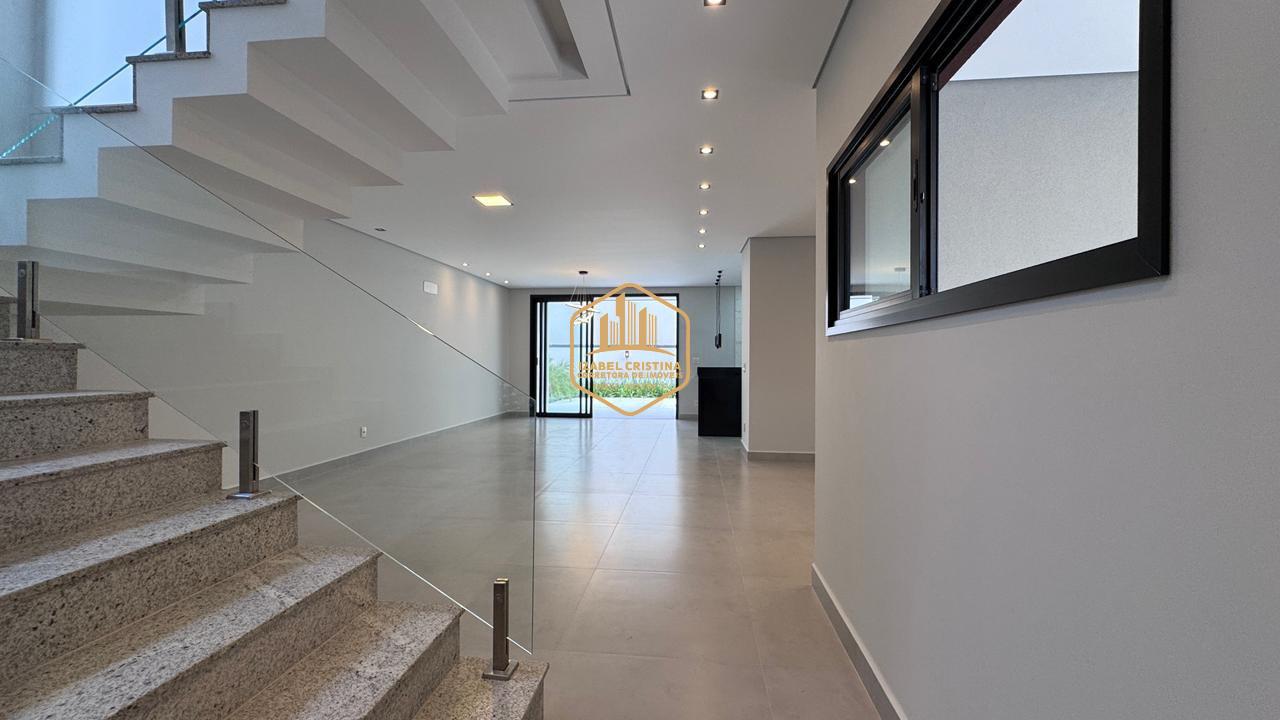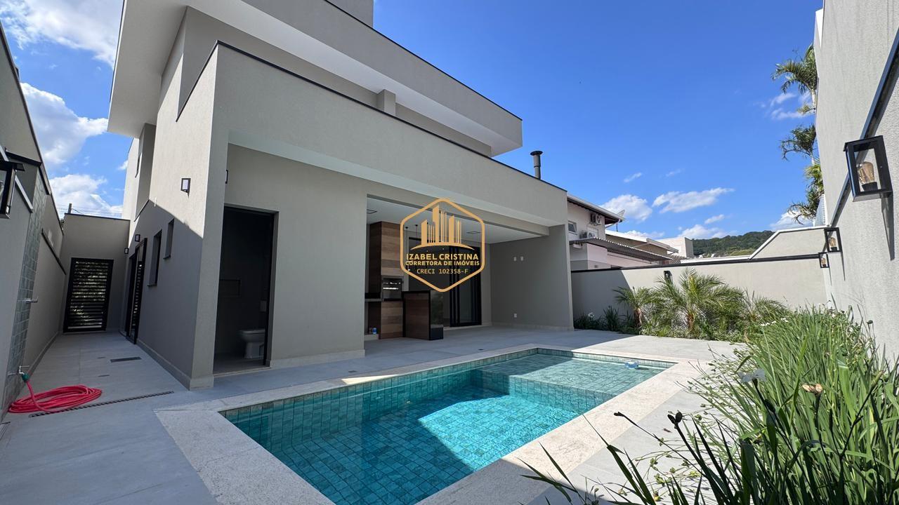 Moderno sobrado à venda em condomínio de alto padrão em Vinhedo! São 3 suítes (sendo a master com espaço para closet e duas com varanda), salas amplas de TV e estar integradas, lavabo, cozinha conceito aberto, área gourmet com churrasqueira e piscina.
