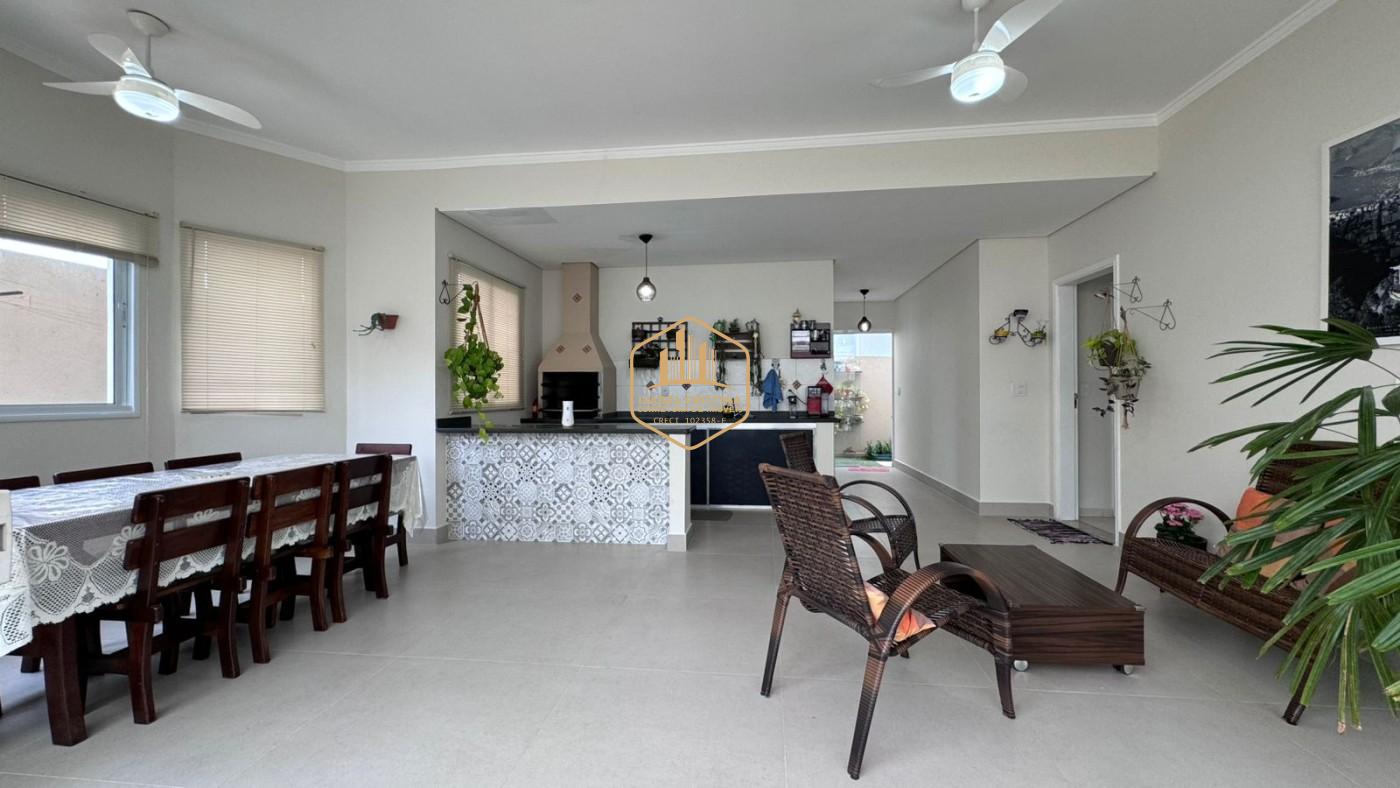 No piso térreo, desfrute de salas amplas de estar, jantar e TV, integradas à cozinha com móveis planejados, lavabo, despensa, área gourmet completa com churrasqueira e banheiro de apoio, além de um deck com pergolado e quintal espaçoso. Garagens para 3 ou até 4 veículos, apenas 1 vaga com cobertura com toldo.
